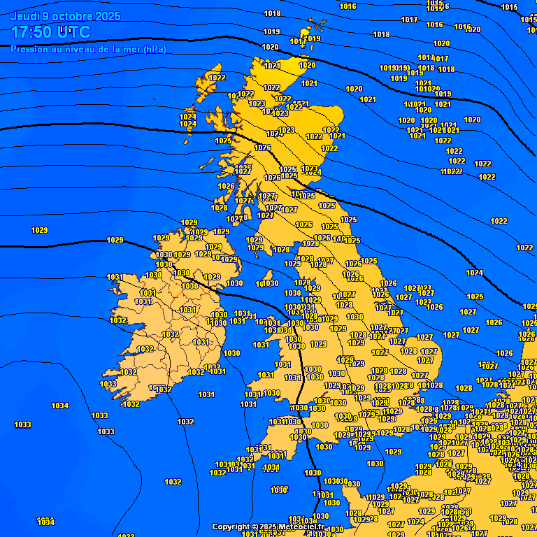On Friday, mean sea level pressure over Ireland reached 1036 hPa in the southern half of the island, one of the highest readings recorded in 2025.